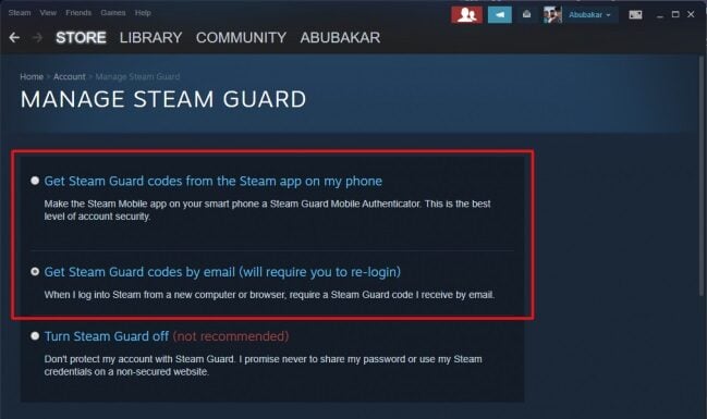Bước 3: Chọn cách xác thực qua Email hoặc ứng dụng Steam trên điện thoại (Android hoặc iPhone).