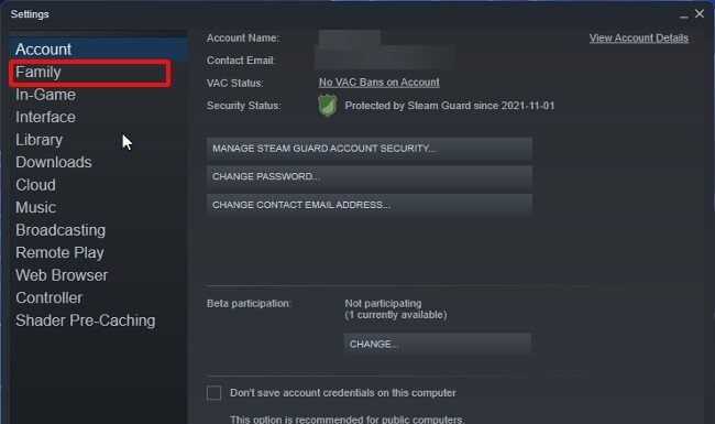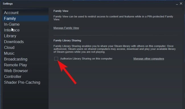 Có thể thu hồi Steam Family Sharing nhanh trong mục Family của Steam.